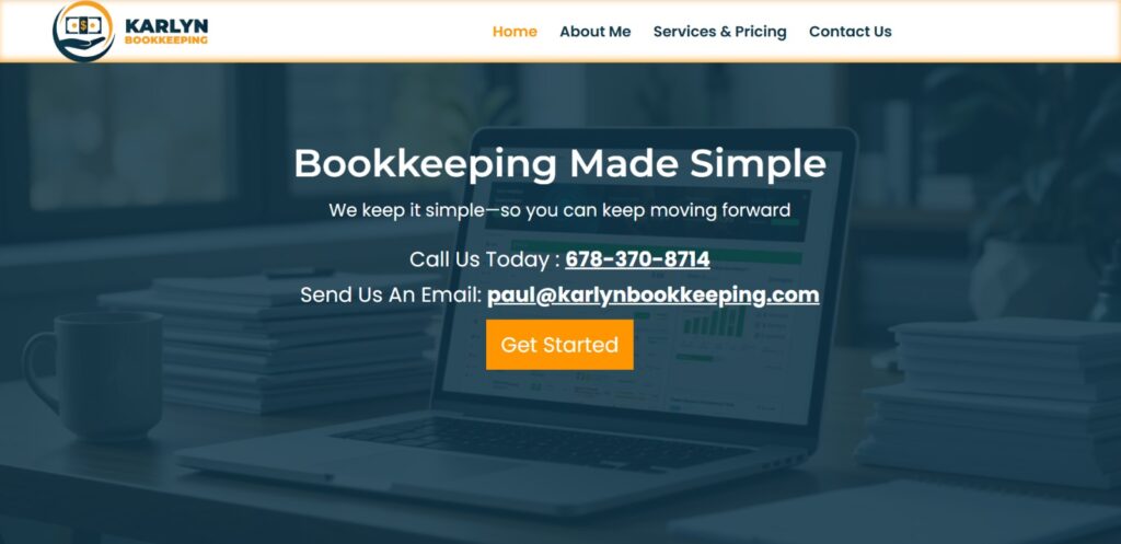 Karlyn Bookkeepers website helps businesses manage finances efficiently by showcasing bookkeeping services, pricing, and support.