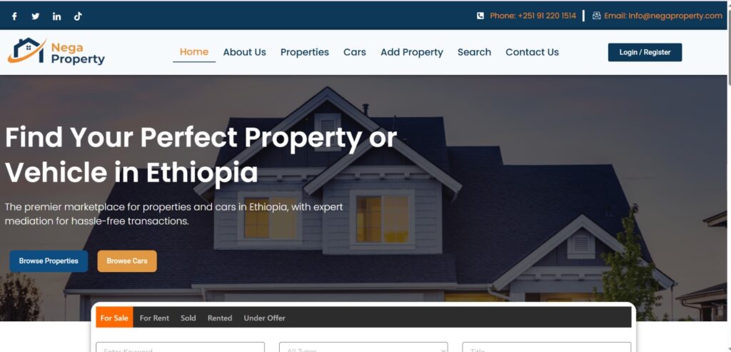 Negaproperty.com is a modern real estate website showcasing properties for sale and rent across Kenya.